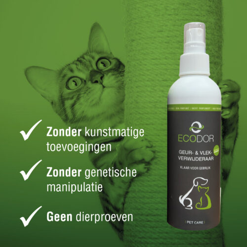EcoPet odour & stain remover is a bio-spray that removes unwanted odours and stains in areas where your pet stays or passes, such as the cat’s box, dog basket, rodent cages, etc.